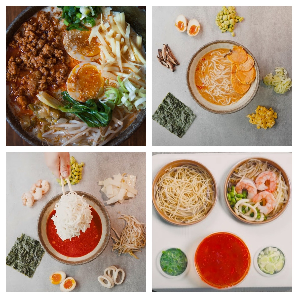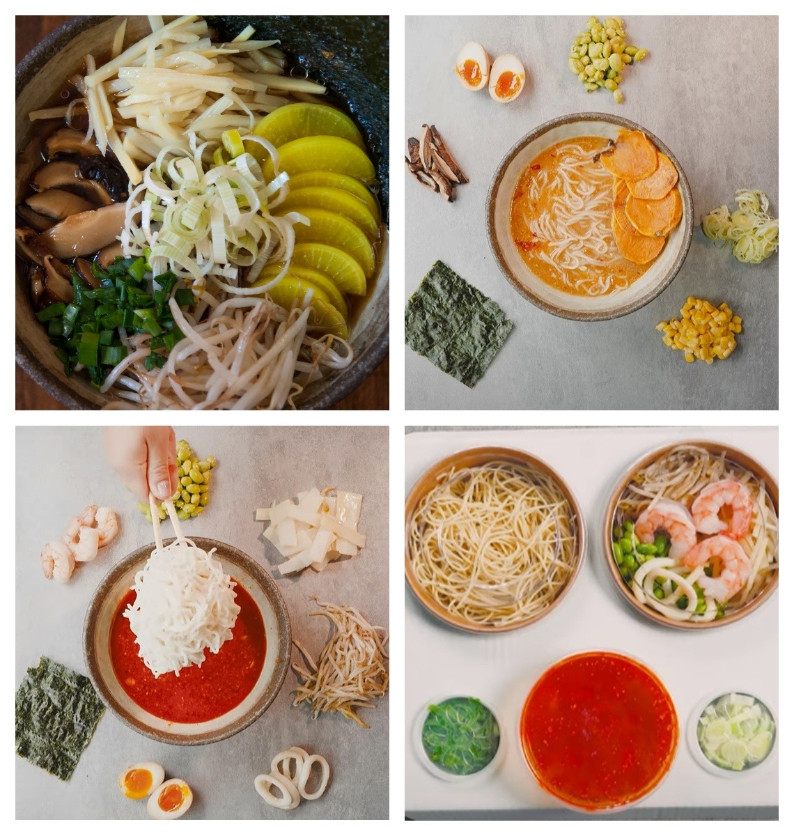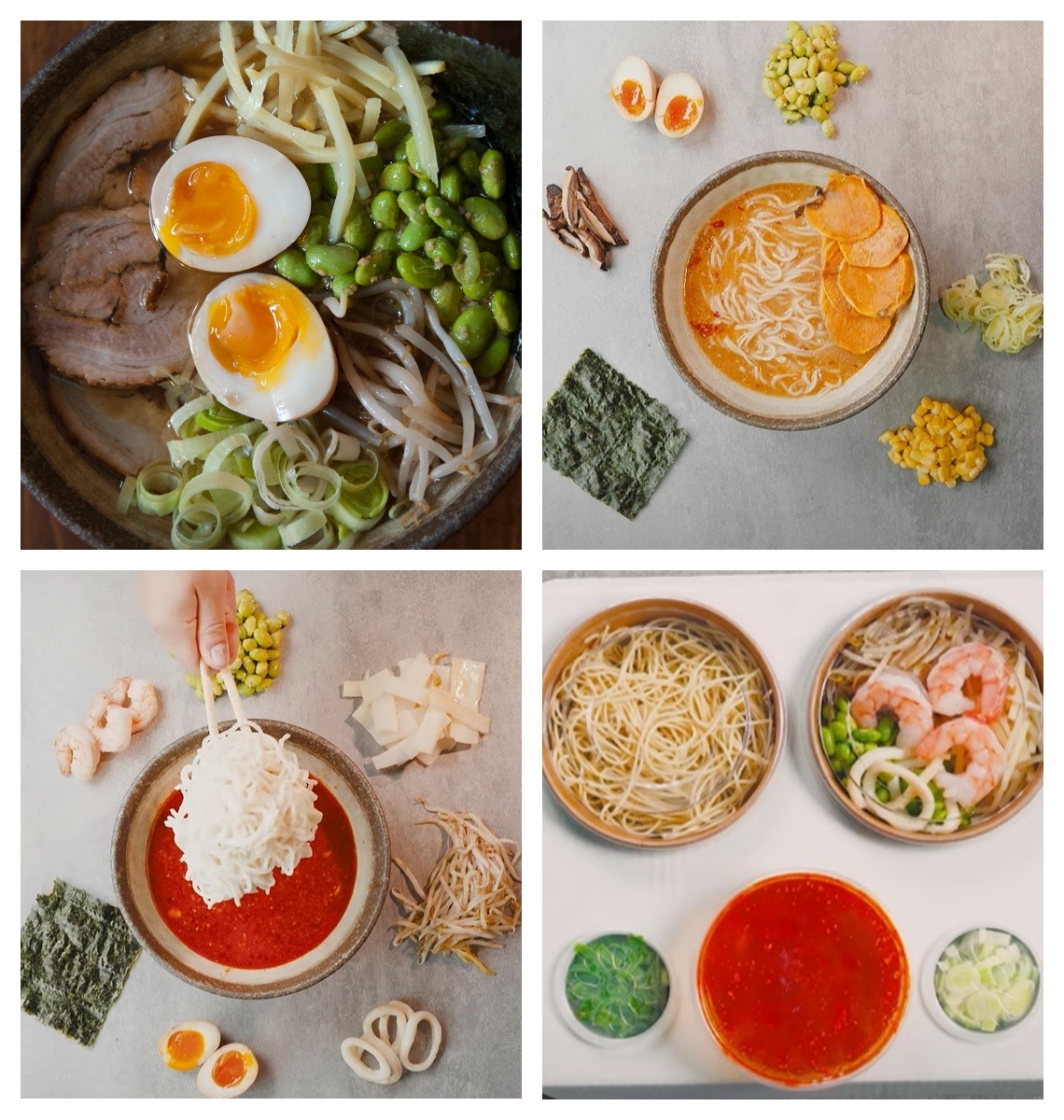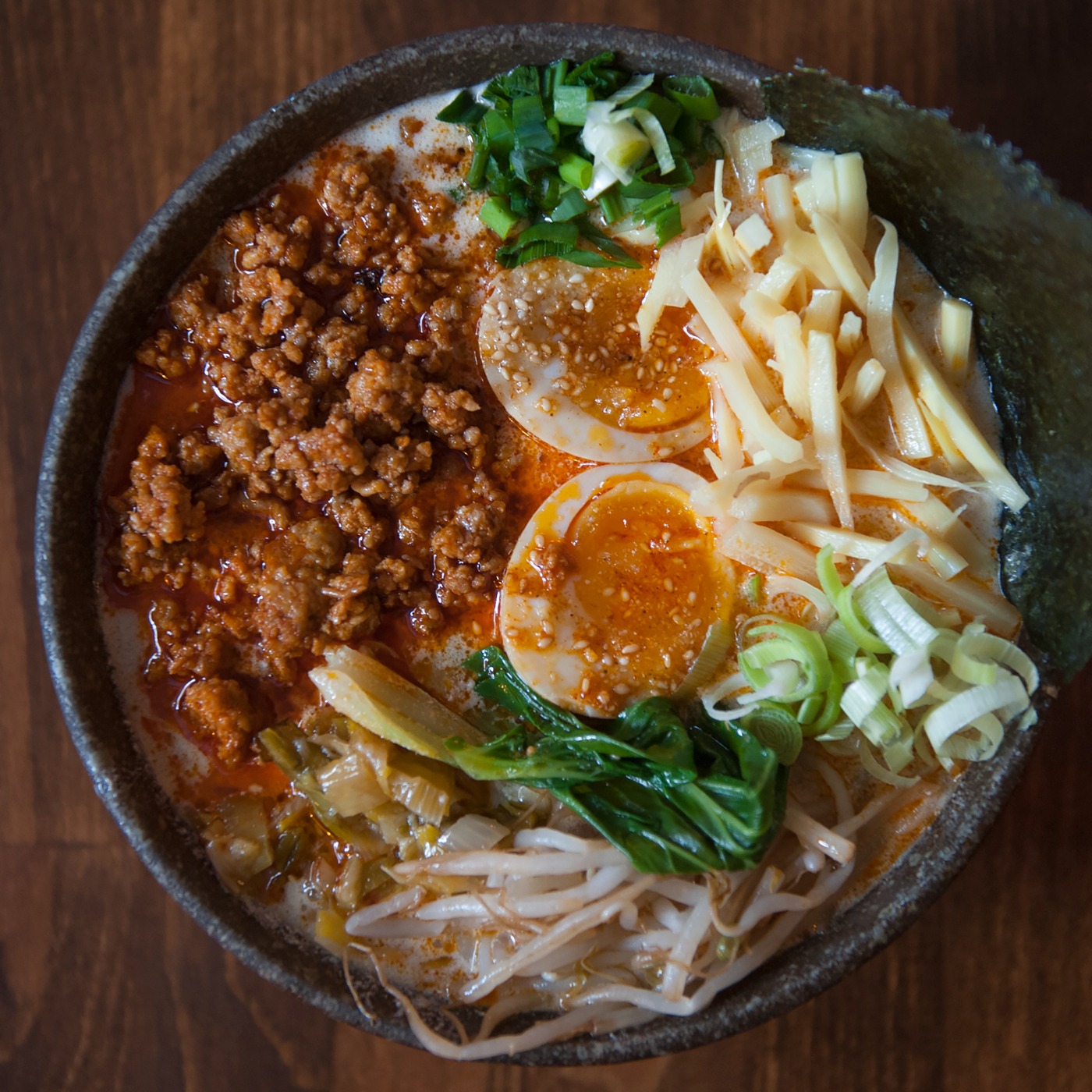- ręcznie robiony makaron, bataty, nitamago, chili, kiełki fasoli mung, pok choy, soja edamam, kukurydza zielona dymka i nori