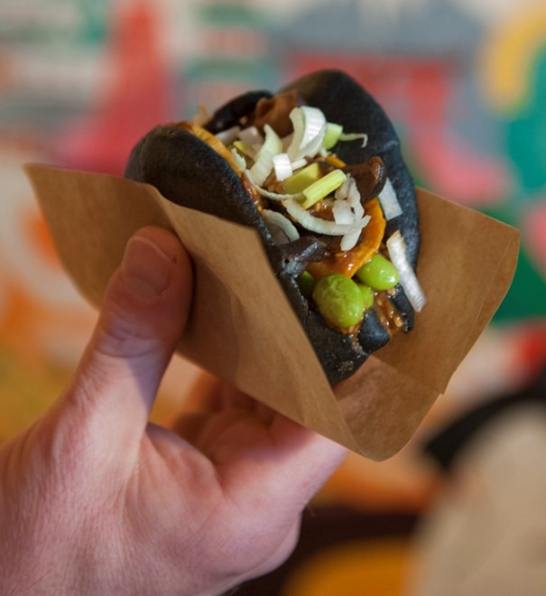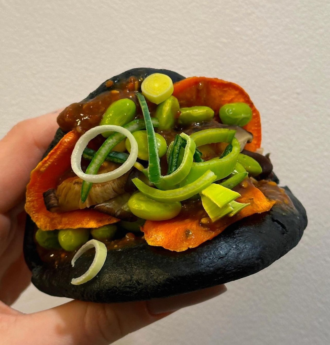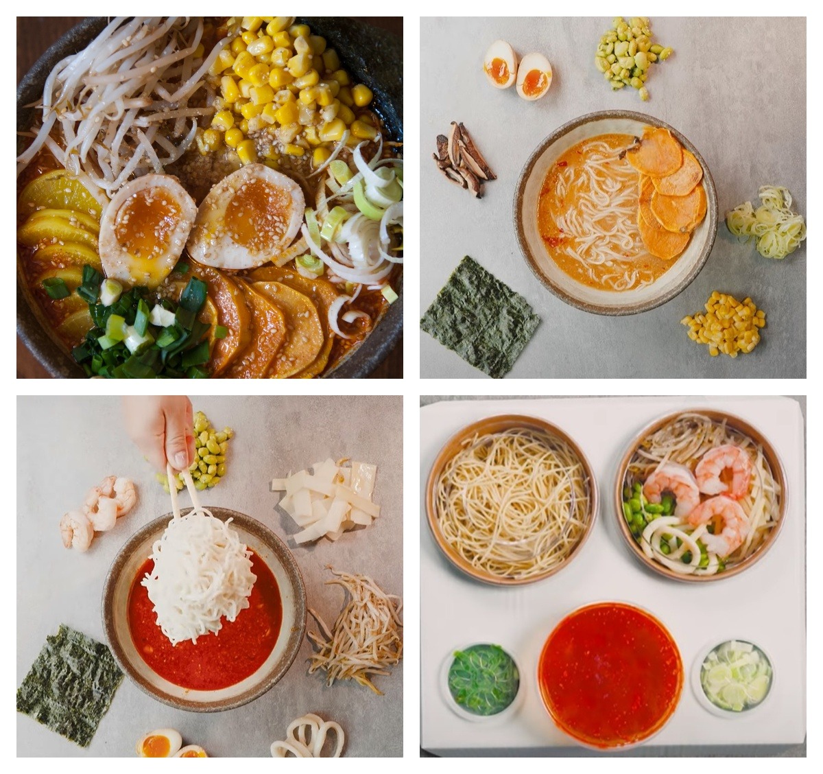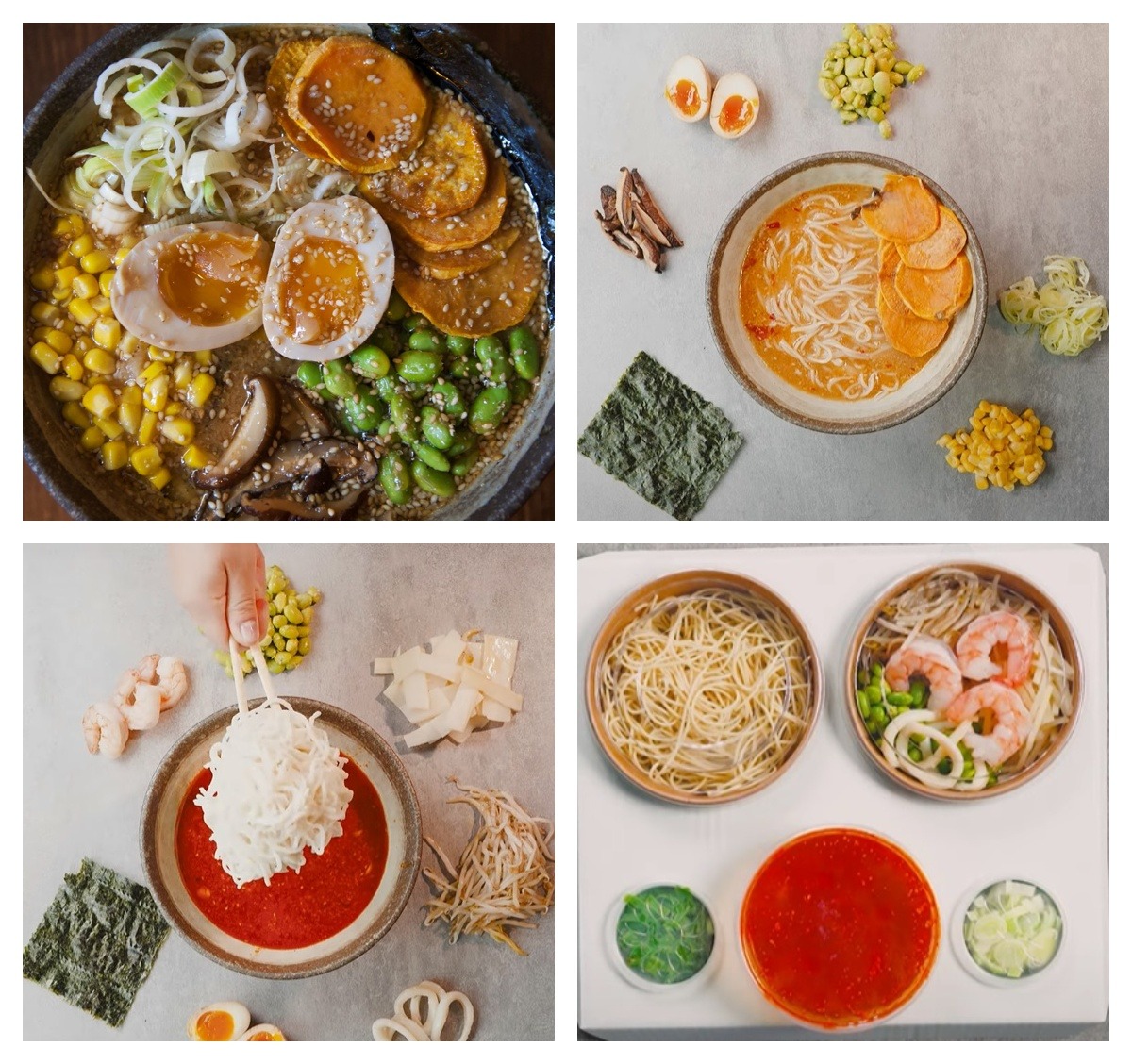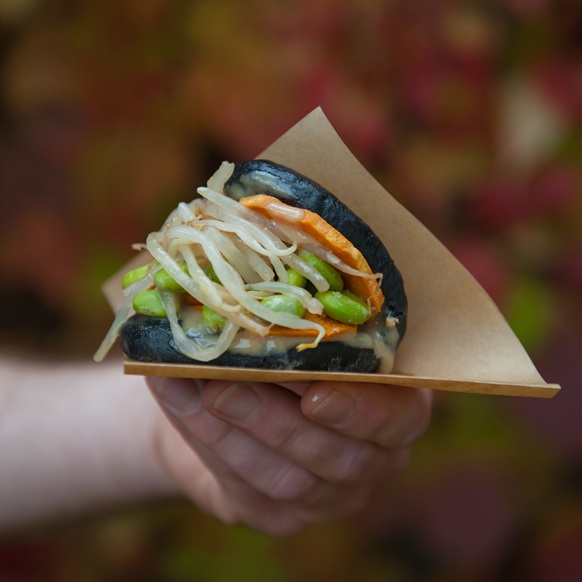 - ręcznie robiony makaron, bataty, nitamago, chili, kiełki fasoli mung, pok choy, soja edamam, kukurydza zielona dymka i nori